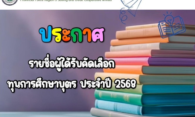 ตรวจสอบรายชื่อผู้ได้รับคัดเลือกทุนการศึกษาบุตร ประจำปี 2568 ประเภทที่ 1 ทุนเรียนดี (ทุนเรียนดี) ...