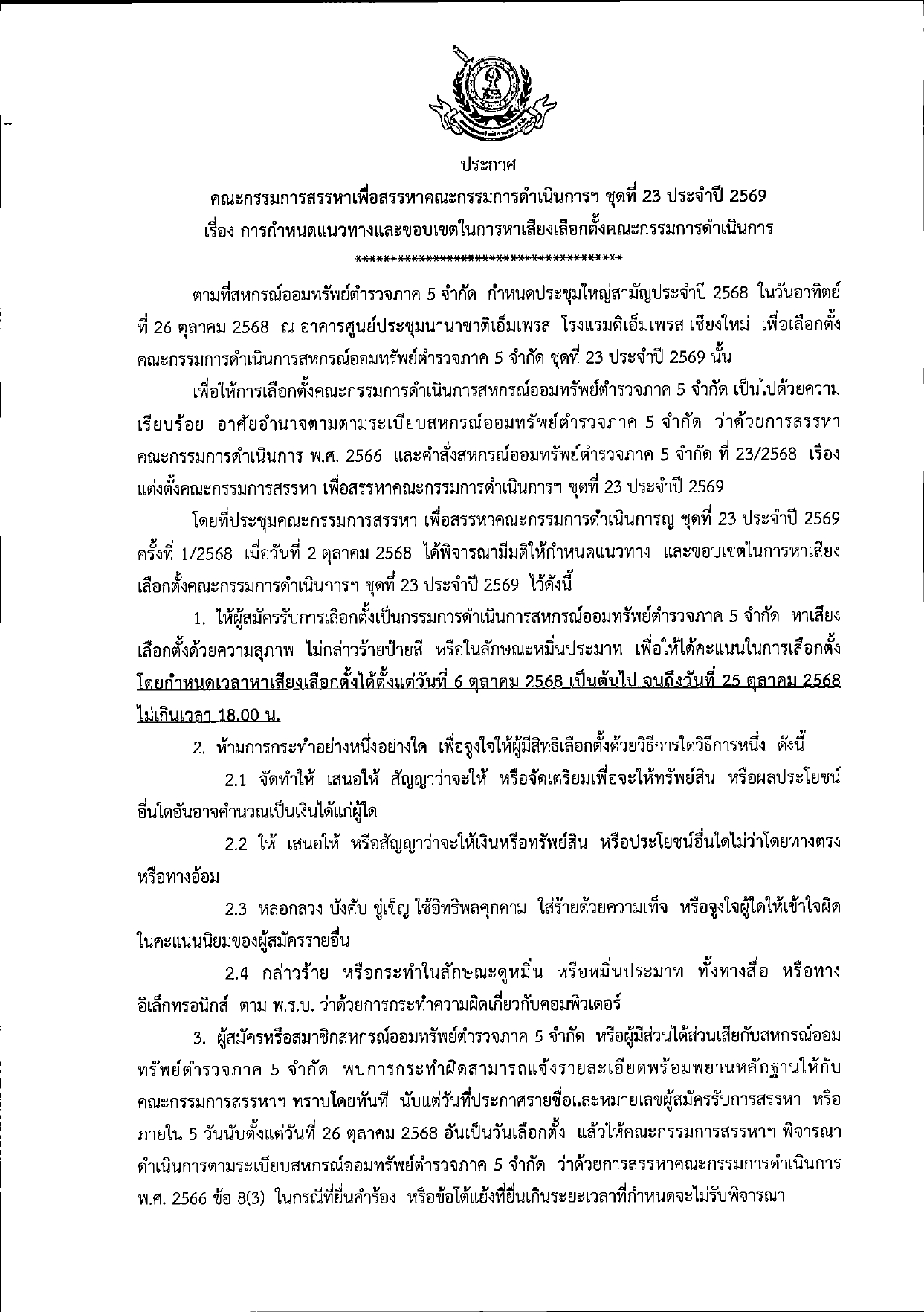 ประกาศ การกำหนดแนวทางและขอบเขตในการหาเสียงเลือกตั้ง คณะกรรมการดำเนินการ ชุดที่ 23 ประจำปี 2569